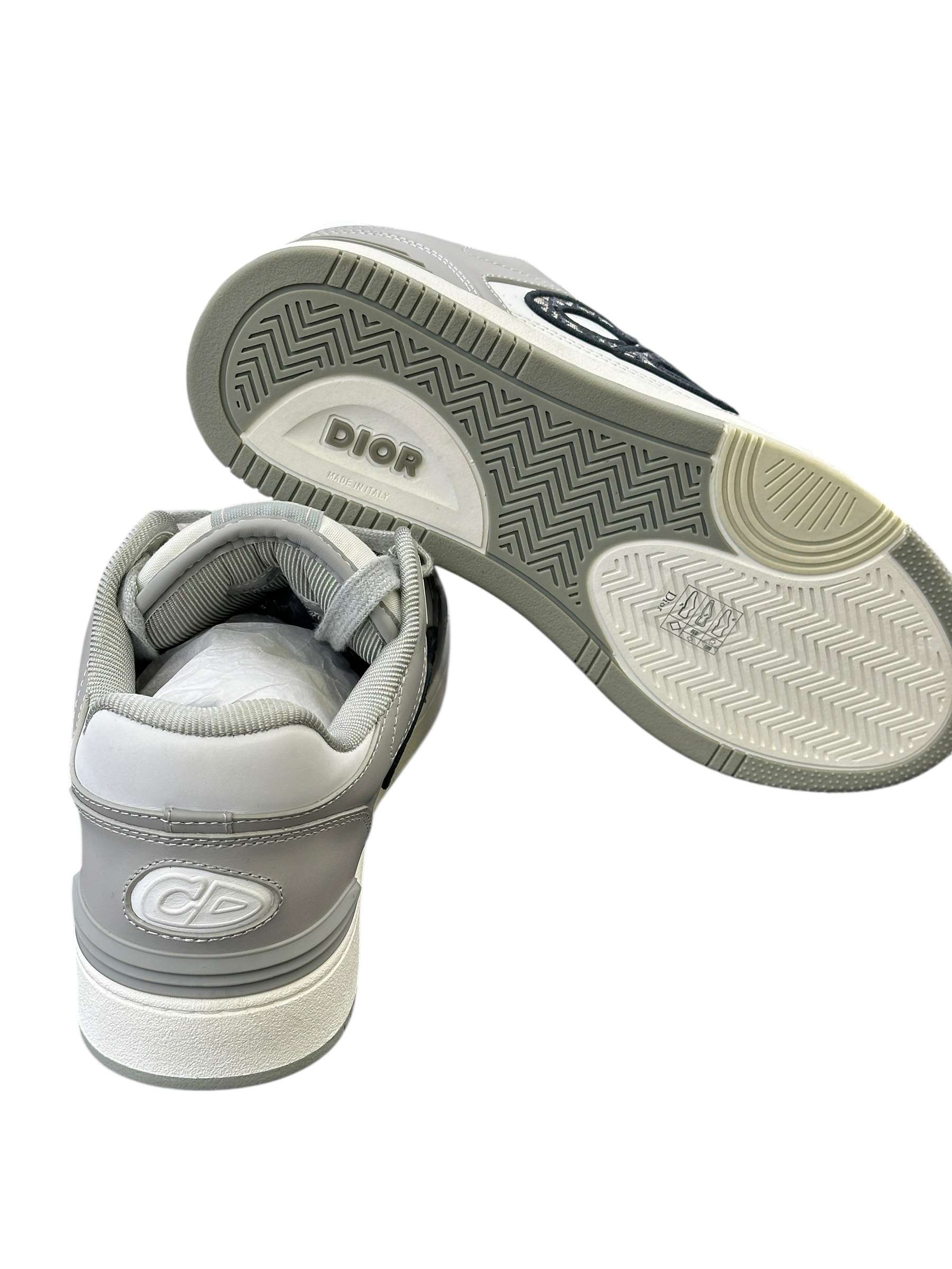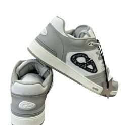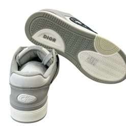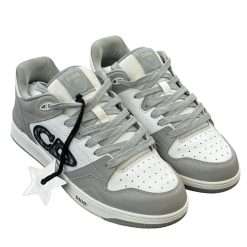 The B57 Dribble low-top sneaker is a new House essential. Crafted in Dior gray and white smooth calfskin, the style is adorned with a beige and black Dior Oblique jacquard CD signature on the sides. The sneaker is enhanced by various hallmark details on the tongue, sole and rear, while perforated detailing, topstitching and a rubber insert accentuate its athletic appeal. Completed by a two-tone rubber sole, the sneaker will elevate any favorite outfit.